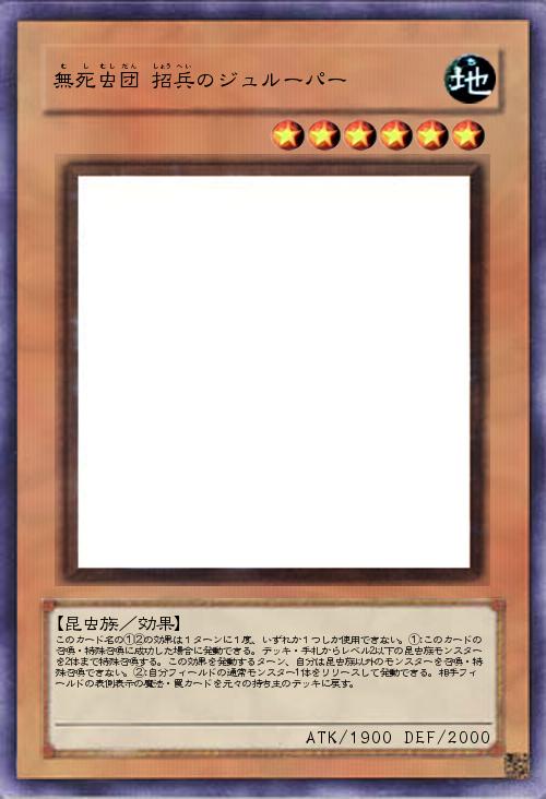 | このカード名の①②の効果は1ターンに1度、いずれか1つしか使用できない。①:このカードの召喚・特殊召喚に成功した場合に発動できる。デッキ・手札からレベル2以下の昆虫族モンスターを2体まで特殊召喚する。この効果を発動するターン、自分は昆虫族以外のモンスターを召喚・特殊召喚できない。②:自分フィールドの通常モンスター1体をリリースして発動できる。相手フィールドの表側表示の魔法・罠カードを元々の持ち主のデッキに戻す。 | |||