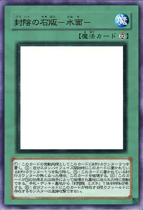 | ①:このカードの発動処理としてこのカードに封印カウンター3つを置く。②:自分スタンバイフェイズ開始時にこのカードに置かれている封印カウンター1つを取り除く。③:このカードに置かれている封印カウンターが無くなった場合、このカードを破壊する。④:このカードが③の効果または相手によって破壊され墓地に送られた時に発動できる。手札・デッキ・墓地から「封陰龍 ミズチ」1体を特殊召喚する。⑤:自分フィールドにこのカードが存在する限りフィールドに存在するモンスターは直接攻撃できない。 | |||