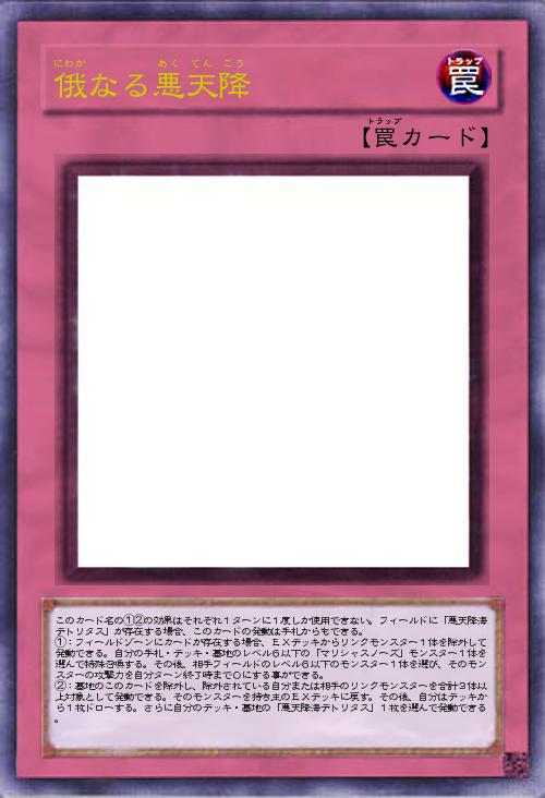 フィールドカードがある場合にEXデッキのリンクを除外してレベル6以下のマリシャスノーズを特殊召喚できます。ついでにレベル6以下のモンスターの攻撃力を0にできるおまけつき。デトリタスがあれば手札からも使えます。