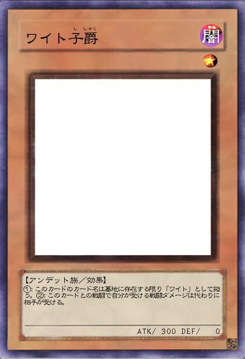 | ①:このカードのカード名は墓地に存在する限り「ワイト」として扱う。②:このカードとの戦闘で自分が受ける戦闘ダメージは代わりに相手が受ける。 | |||