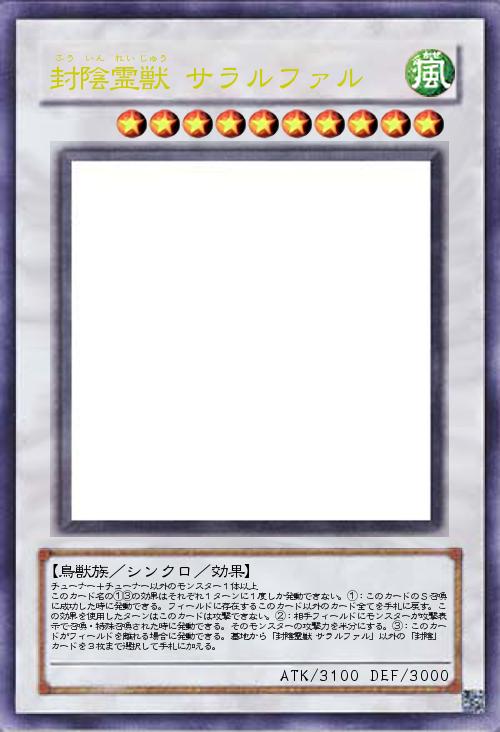 | チューナー+チューナー以外のモンスター1体以上 このカード名の①③の効果はそれぞれ1ターンに1度しか発動できない。①:このカードのS召喚に成功した時に発動できる。フィールドに存在するこのカード以外のカード全てを手札に戻す。この効果を使用したターンはこのカードは攻撃できない。②:相手フィールドにモンスターが攻撃表示で召喚・特殊召喚された時に発動できる。そのモンスターの攻撃力を半分にする。③:このカードがフィールドを離れる場合に発動できる。墓地から「封陰霊獣 サラルファル」以外の「封陰」カードを3枚まで選択して手札に加える。 | |||