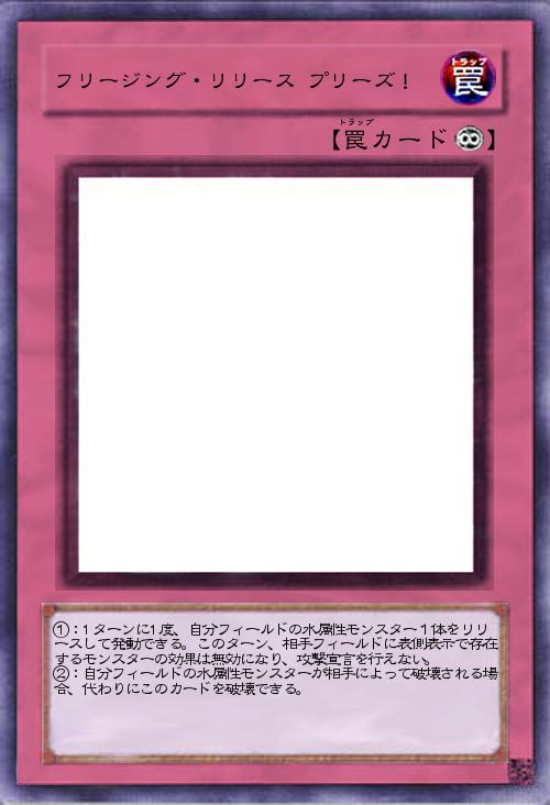 | ①:1ターンに1度、自分フィールドの水属性モンスター1体をリリースして発動できる。このターン、相手フィールドに表側表示で存在するモンスターの効果は無効になり、攻撃宣言を行えない。 ②:自分フィールドの水属性モンスターが相手によって破壊される場合、代わりにこのカードを破壊できる。 | |||