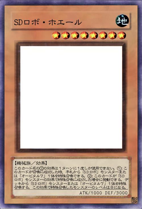 | このカード名の②の効果は1ターンに1度しか使用できない。①:このカードが召喚に成功した時、手札から「SDロボ」モンスターまたは「オービタル7」1体を特殊召喚できる。②:このカードが「SDロボ」モンスターの効果で特殊召喚に成功した場合に発動できる。デッキから「SDロボ」モンスターまたは「オービタル7」1体を特殊召喚する。この効果で特殊召喚したモンスターのレベルは8になる。 | |||
