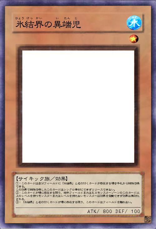 | ①:このカードは自分フィールドに「氷結界」と名の付くカードが存在する場合手札から特殊召喚できる。 この効果で特殊召喚したこのカードはシンクロ素材にできずリリースできない。 ②:このカードが場に存在する限り、相手フィールドまたはEXモンスターゾーンのこのカード以上のレベルを持つモンスターまたはレベルを持たないモンスターは効果を発動できず効果は無効化される、 ③:「氷結界」と名の付くカードが場に存在する限り、このカードはフィールドを離れない。 | |||