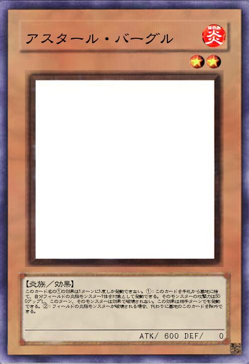 | このカード名の①の効果は1ターンに1度しか発動できない。①:このカードを手札から墓地に捨て、自分フィールドの炎族モンスター1体を対象として発動できる。そのモンスターの攻撃力は500アップし、このターン、そのモンスターは効果で破壊されない。この効果は相手ターンでも発動できる。②:フィールドの炎族モンスターが破壊される場合、代わりに墓地のこのカードを除外できる。 | |||