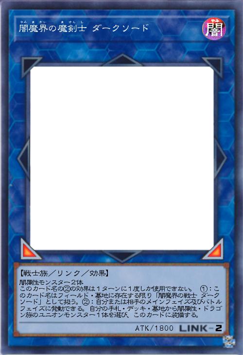 | 闇属性モンスター2体 このカード名の②の効果は1ターンに1度しか使用できない。 ①:このカード名はフィールド・墓地に存在する限り「闇魔界の戦士 ダークソード」として扱う。②:自分または相手のメインフェイズ及びバトルフェイズに発動できる。自分の手札・デッキ・墓地から闇属性・ドラゴン族のユニオンモンスター1体を選び、このカードに装備する。 | |||