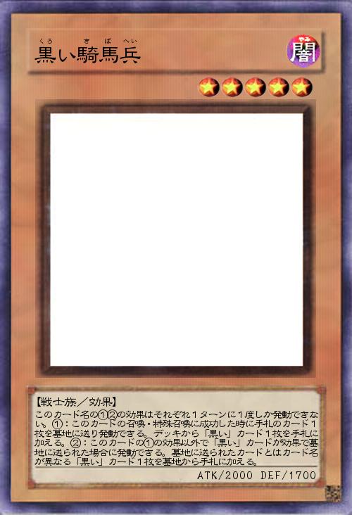 | このカード名の①②の効果はそれぞれ1ターンに1度しか発動できない。①:このカードの召喚・特殊召喚に成功した時に手札のカード1枚を墓地に送り発動できる。デッキから「黒い」カード1枚を手札に加える。②:このカードの①の効果以外で「黒い」カードが効果で墓地に送られた場合に発動できる。墓地に送られたカードとはカード名が異なる「黒い」カード1枚を墓地から手札に加える。 | |||