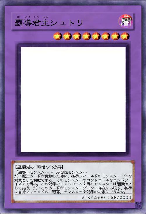 | 「覇導」モンスター + 闇属性モンスター ①:魔法カードが発動した時に、相手フィールドのモンスター1体を対象として発動できる。そのモンスターのコントロールをエンドフェイズまで得る。この効果でコントロールを得たモンスターは闇属性として扱う。②:このカードがモンスターゾーンに存在する限り、相手は自分フィールドの「覇導」モンスターを効果の対象にできない。 | |||