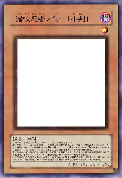 | このカード名の①の効果は1ターンに1度しか使用できない。 ①:手札・フィールドのこのカードを除外して発動できる。デッキから「潜咬忍者」モンスター1体を手札に加え、その後手札を1枚選んで捨てる。この効果でフィールドから除外されたこのカードはエンドフェイズにフィールドに戻る。この効果は相手ターンでも発動できる。 ②:除外されているこのカードをデッキに戻して発動できる。このターン自分は通常召喚に加えて1度だけ、自分メインフェイズに「潜咬忍者」モンスター1体を召喚できる。 ③:除外されたこのモンスターがフィールドに戻った場合に発動できる。次のターン、自分はレベル5以上の「潜咬忍者」モンスターを召喚する場合に必要なリリースをなくす事ができる。 | |||