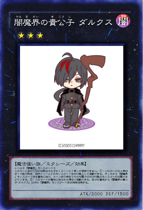| レベル3「闇魔界」モンスター×2 このカード名の①②の効果はそれぞれ1ターンに1度しか使用できない。①:このカードのX素材を1つ取り除き、相手フィールドのモンスター1体を対象として発動できる。デッキから「闇魔界」モンスター1体を墓地に送り、ターン終了時までその攻撃力分だけ対象のモンスターの攻撃力をダウンする。②:このカードが墓地に送られた場合に発動できる。自分の墓地から「闇魔界の貴公子 ダルクス」以外の「闇魔界」モンスター1体を特殊召喚する。 | |||