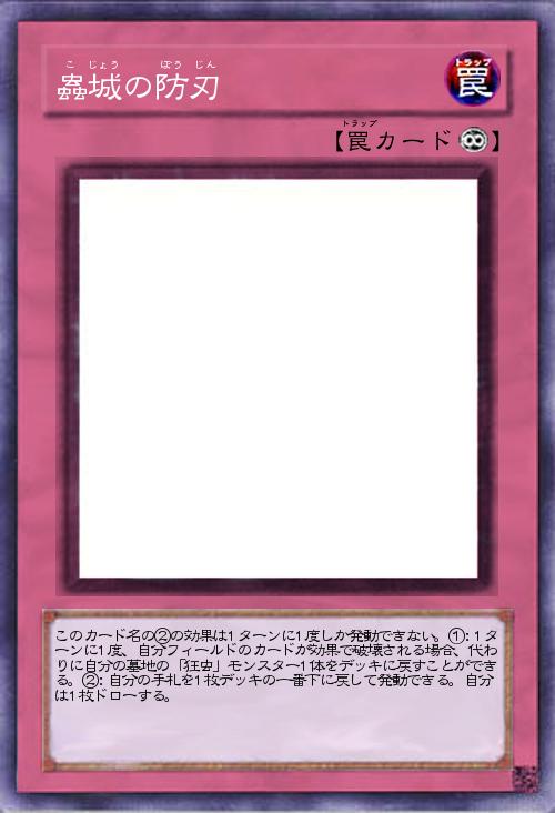 | このカード名の②の効果は1ターンに1度しか発動できない。①:1ターンに1度、自分フィールドのカードが効果で破壊される場合、代わりに自分の墓地の「狂虫」モンスター1体をデッキに戻すことができる。②:自分の手札を1枚デッキの一番下に戻して発動できる。自分は1枚ドローする。 | |||