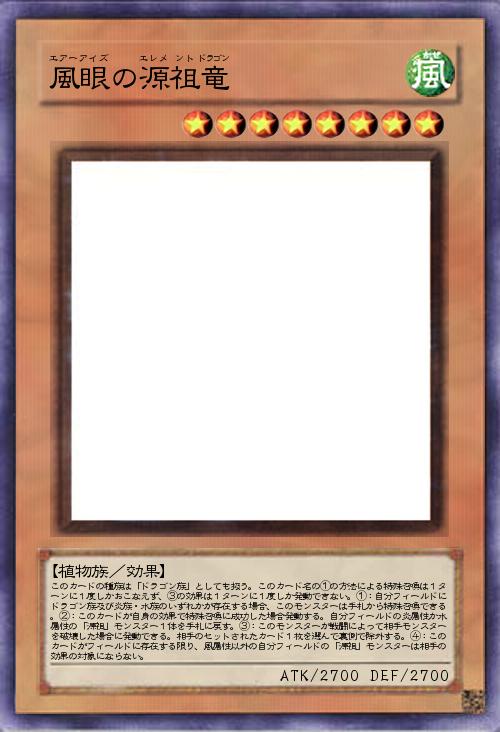 | このカードの種族は「ドラゴン族」としても扱う。このカード名の①の方法による特殊召喚は1ターンに1度しかおこなえず、③の効果は1ターンに1度しか発動できない。①:自分フィールドにドラゴン族及び炎族・水族のいずれかが存在する場合、このモンスターは手札から特殊召喚できる。②:このカードが自身の効果で特殊召喚に成功した場合発動する。自分フィールドの炎属性か水属性の「源祖」モンスター1体を手札に戻す。③:このモンスターが戦闘によって相手モンスターを破壊した場合に発動できる。相手のセットされたカード1枚を選んで裏側で除外する。④:このカードがフィールドに存在する限り、風属性以外の自分フィールドの「源祖」モンスターは相手の効果の対象にならない。 | |||