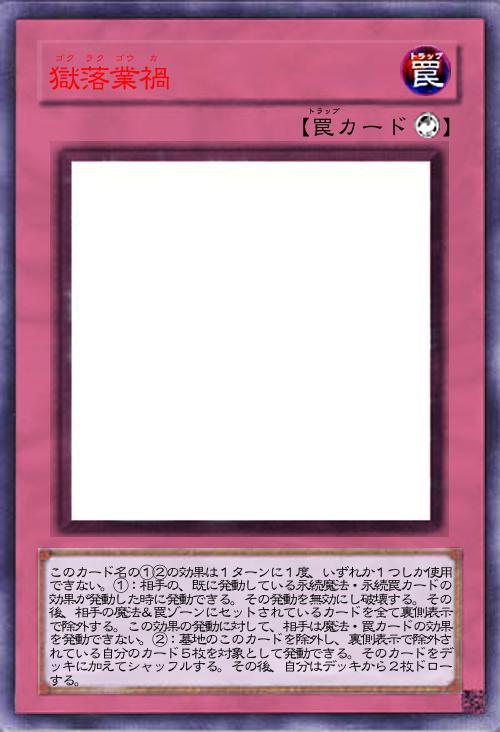 | このカード名の①②の効果は1ターンに1度、いずれか1つしか使用できない。①:相手の、既に発動している永続魔法・永続罠カードの効果が発動した時に発動できる。その発動を無効にし破壊する。その後、相手の魔法&罠ゾーンにセットされているカードを全て裏側表示で除外する。この効果の発動に対して、相手は魔法・罠カードの効果を発動できない。②:墓地のこのカードを除外し、裏側表示で除外されている自分のカード5枚を対象として発動できる。そのカードをデッキに加えてシャッフルする。その後、自分はデッキから2枚ドローする。 | |||