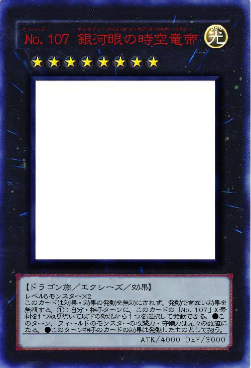 | レベル8モンスター×2 このカードは効果・効果の発動を無効にされず、発動できない効果を無視する。①:自分・相手ターンに、このカードの「No.107」X素材を1つ取り除いて以下の効果から1つを選択して発動できる。●このターン、フィールドのモンスターの攻撃力・守備力は元々の数値になる。●このターン相手のカードの効果は発動したものとして扱う。 | |||