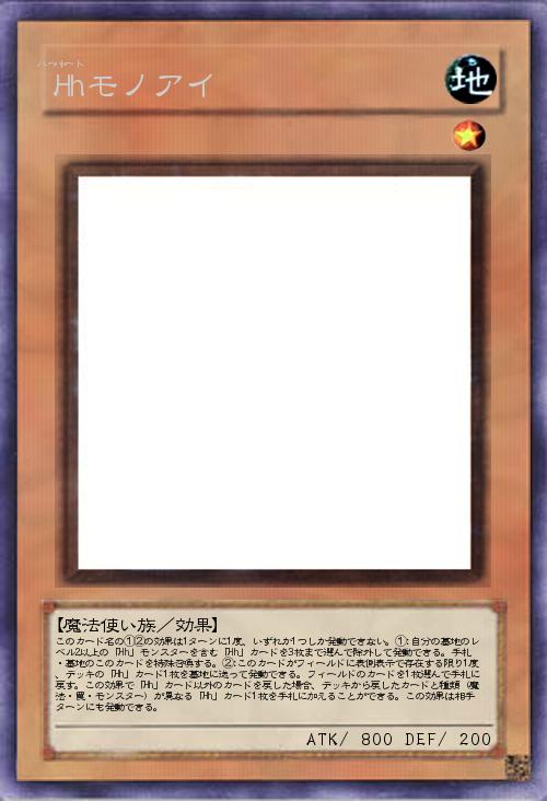 | このカード名の①②の効果は1ターンに1度、いずれか1つしか発動できない。①:自分の墓地のレベル2以上の「Hh」モンスターを含む「Hh」カードを3枚まで選んで除外して発動できる。手札・墓地のこのカードを特殊召喚する。②:このカードがフィールドに表側表示で存在する限り1度、デッキの「Hh」カード1枚を墓地に送って発動できる。フィールドのカードを1枚選んで手札に戻す。この効果で「Hh」カード以外のカードを戻した場合、デッキから戻したカードと種類(魔法・罠・モンスター)が異なる「Hh」カード1枚を手札に加えることができる。この効果は相手ターンにも発動できる。 | |||