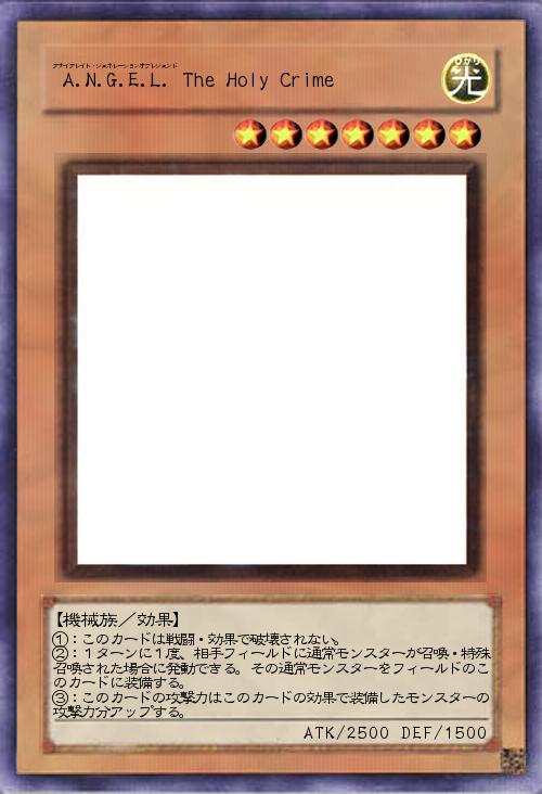 | ①:このカードは戦闘・効果で破壊されない。 ②:1ターンに1度、相手フィールドに通常モンスターが召喚・特殊召喚された場合に発動できる。その通常モンスターをフィールドのこのカードに装備する。 ③:このカードの攻撃力はこのカードの効果で装備したモンスターの攻撃力分アップする。 | |||