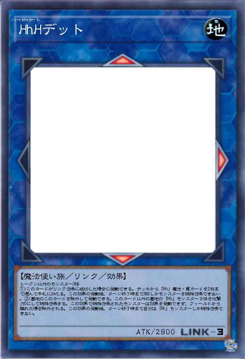 | トークン以外のモンスター3体 ①:このカードがリンク召喚に成功した場合に発動できる。デッキから「Hh」魔法・罠カードを2枚まで選んで手札に加える。この効果の発動後、ターン終了時まで3回しかモンスターを特殊召喚できない。②:墓地のこのカードを除外して発動できる。このカード以外の墓地の「Hh」モンスター3体を攻撃力0にして特殊召喚する。この効果で特殊召喚されたモンスターは効果を発動できず、フィールドから離れた場合除外される。この効果の発動後、ターン終了時まで自分は「Hh」モンスターしか特殊召喚できない。 | |||