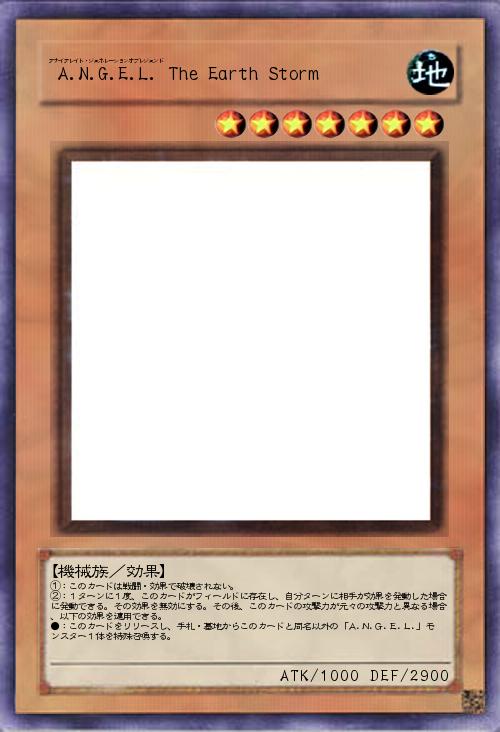 | ①:このカードは戦闘・効果で破壊されない。 ②:1ターンに1度、このカードがフィールドに存在し、自分ターンに相手が効果を発動した場合に発動できる。その効果を無効にする。その後、このカードの攻撃力が元々の攻撃力と異なる場合、以下の効果を適用できる。 ●:このカードをリリースし、手札・墓地からこのカードと同名以外の「A.N.G.E.L.」モンスター1体を特殊召喚する。 | |||