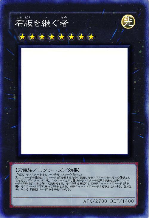 | 「石版」モンスターを含むレベル8モンスター×2体以上 ①:このカードの属性はこのカードをX召喚するために使用したモンスターのそれぞれの属性としても扱う。②:1ターンに1度、このカードと同じ属性のモンスターの効果が発動した時にこのカードのX素材を1つ取り除いて発動できる。その効果を無効にして相手フィールドのカードを1枚選んでこのカードの下に重ねてX素材とする。相手フィールドにカードが存在しない場合、自分はデッキから「石版」カード1枚を手札に加える。 | |||