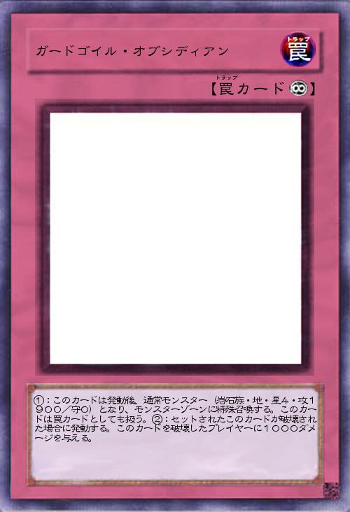 | ①:このカードは発動後、通常モンスター(岩石族・地・星4・攻1900/守0)となり、モンスターゾーンに特殊召喚する。このカードは罠カードとしても扱う。②:セットされたこのカードが破壊された場合に発動する。このカードを破壊したプレイヤーに1000ダメージを与える。 | |||