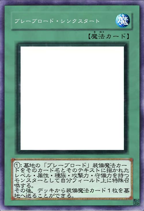 | ①:墓地の「ブレーブロード」装備魔法カードをそのカード名とそのテキストに描かれたレベル・属性・種族・攻撃力・守備力を持つモンスターとして自分フィールド上に特殊召喚する。 その後、デッキから装備魔法カード1枚を墓地へ送ることができる。 | |||