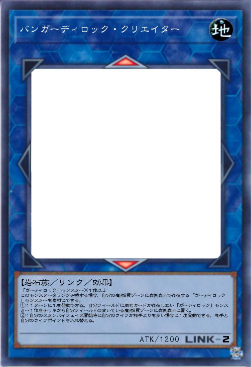 | 「ガーディロック」モンスター×1体以上 このモンスターをリンク召喚する場合、自分の魔法&罠ゾーンに表側表示で存在する「ガーディロック」モンスターも素材にできる。 ①:1ターンに1度発動できる。自分フィールドに同名カードが存在しない「ガーディロック」モンスター1体をデッキから自分フィールドの空いている魔法&罠ゾーンに表側表示に置く。 ②:自分のスタンバイフェイズ開始時に自分のライフが相手よりも多い場合に1度発動できる。相手と自分のライフポイントを入れ替える。 | |||