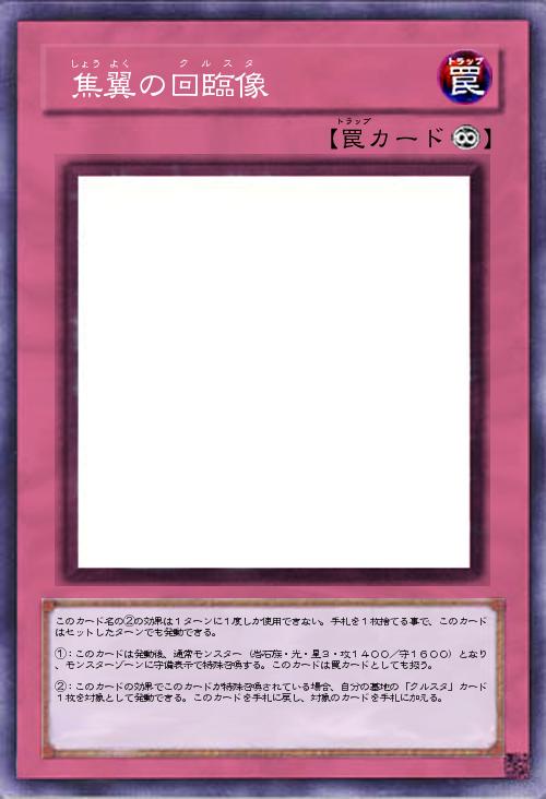 | このカード名の②の効果は1ターンに1度しか使用できない。手札を1枚捨てる事で、このカードはセットしたターンでも発動できる。 ①:このカードは発動後、通常モンスター(岩石族・光・星3・攻1400/守1600)となり、モンスターゾーンに守備表示で特殊召喚する。このカードは罠カードとしても扱う。 ②:このカードの効果でこのカードが特殊召喚されている場合、自分の墓地の「クルスタ」カード1枚を対象として発動できる。このカードを手札に戻し、対象のカードを手札に加える。 | |||