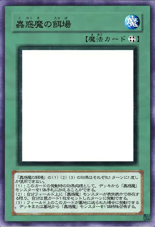 | 「蟲惑魔の餌場」の(1)(2)(3)の効果はそれぞれ1ターンに1度しか使用できない。 (1):このカードの発動時の効果処理として、デッキから「蟲惑魔」モンスターを1体手札に加えることができる。 (2):自分フィールド上に「蟲惑魔」モンスターが表側表示で存在する限り、自分は罠カード1枚をセットしたターンに発動できる。 (3):フィールド上のこのカードが墓地に送られた場合に発動できる。デッキまたは墓地から「蟲惑魔」モンスターを1体特殊召喚する。 | |||