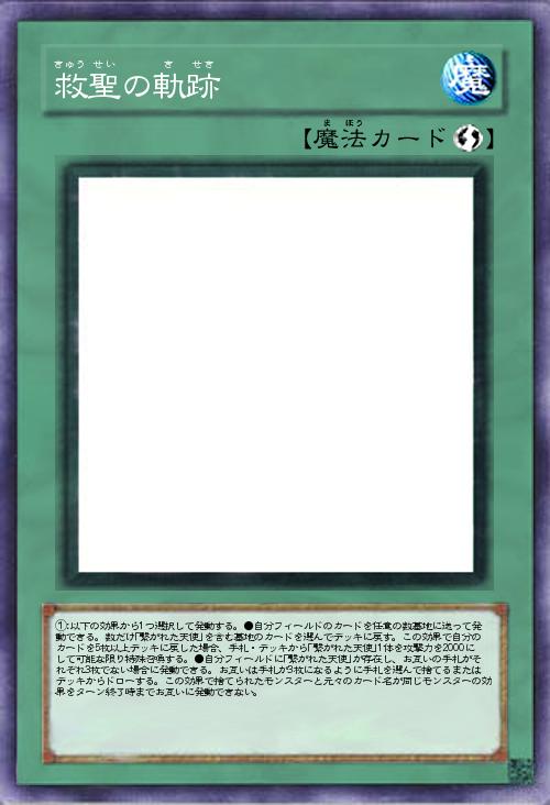 | ①:以下の効果から1つ選択して発動する。●自分フィールドのカードを任意の数墓地に送って発動できる。数だけ「繋がれた天使」を含む墓地のカードを選んでデッキに戻す。この効果で自分のカードを5枚以上デッキに戻した場合、手札・デッキから「繋がれた天使」1体を攻撃力を2000にして可能な限り特殊召喚する。●自分フィールドに「繋がれた天使」が存在し、お互いの手札がそれぞれ3枚でない場合に発動できる。お互いは手札が3枚になるように手札を選んで捨てるまたはデッキからドローする。この効果で捨てられたモンスターと元々のカード名が同じモンスターの効果をターン終了時までお互いに発動できない。 | |||