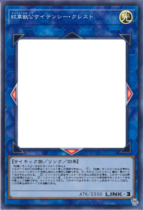 | 「紋章」モンスターを含むモンスター2体以上 このカード名の①の効果は1ターンに1度しか使用できない。 ①:「紋章」モンスターのみを素材としてこのカードがリンク召喚に成功した場合に発動できる。デッキから「メダリオン」魔法・罠カード1枚を手札に加える。 ②:フィールドに同名モンスターが2体以上存在する場合、このカードは効果では破壊されない。 ③:1ターンに1度、このカード以外のフィールドの表側表示モンスター1体を対象として発動できる。エンドフェイズまで、このカードはそのモンスターと同名カードとして扱う。この効果は相手ターンでも発動できる。 | |||