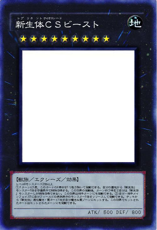 | レベル8モンスター×2体以上 ①:1ターンに1度、このカードのX素材を1つ取り除いて発動できる。自分の墓地から「新生体」モンスター1体を守備表示で特殊召喚する。この効果の発動後、ターン終了時まで自分は「新生体」モンスターしか特殊召喚できない。この効果は相手ターンにも発動できる。②:自分・相手メインフェイズ1に自分フィールドの表側表示のモンスター1体をリリースして発動できる。デッキから「新生体」速攻魔法・罠カード1枚を自分魔法&罠ゾーンにセットする。この効果でセットされたカードはセットされたターンにも発動できる。 | |||