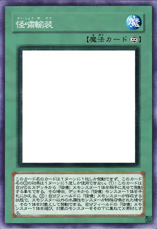 | このカード名のカードは1ターンに1枚しか発動できず、このカード名の②の効果は1ターンに1度しか使用できない。①:このカードは自分のEXデッキから「怪嘯」Xモンスター1体を相手に見せて発動する事もできる。その場合、デッキから「怪嘯」モンスター1体を手札に加える。②:自分フィールドに「怪嘯」Xモンスターが存在する状態で、Xモンスター以外の水属性モンスターが特殊召喚された場合、その1体を対象として発動できる。自分フィールドの「怪嘯」Xモンスター1体を選び、対象のモンスターをその下に重ねてX素材とする。 | |||