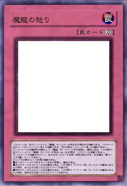 | このカードは、自分フィールドに「魔龍」モンスターが存在する場合のみ発動できる。このカード名のカードは1ターンに1度しか発動できず、③の効果は1ターンに1度しか発動できない。 ①:このカードの発動時の処理として「魔龍」モンスター1体を破壊し、墓地に送る。この効果で自分フィールドに「魔龍」モンスターが存在しなくなる場合、このカードは発動できない。 ②:このカードを発動するターン、自分はモンスターを召喚・特殊召喚できず、他の魔法・罠カードを発動、セットできない。 ③:以下の効果から1つを選び発動できる。 ●互いのフィールドにあるカードを全て破壊し、墓地に送る。 ●自分のデッキの上から10枚を墓地に送る。この効果で「ドラゴン族」モンスターが墓地に送られた場合、自分はその数×500のダメージを受ける。 ●相手のデッキの上から10枚を墓地に送る。この効果で「ドラゴン族」モンスターが墓地に送られた場合、 | |||
