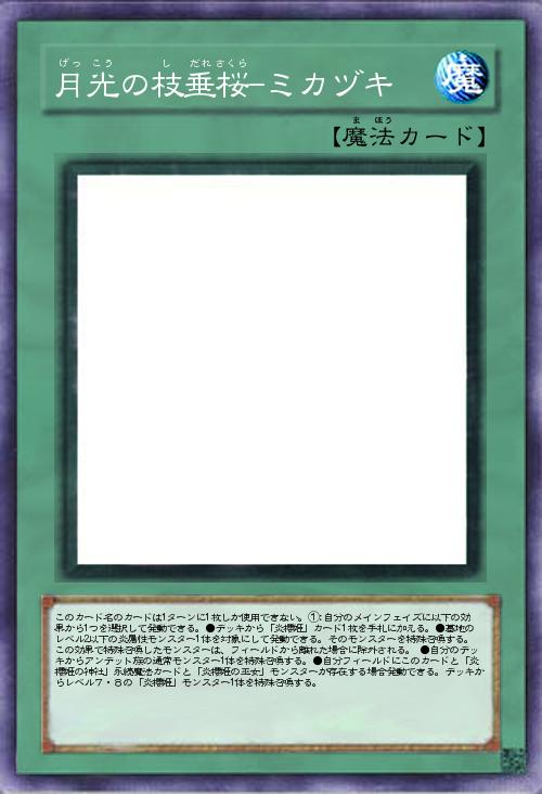 | このカード名のカードは1ターンに1枚しか使用できない。①:自分のメインフェイズに以下の効果から1つを選択して発動できる。●デッキから「炎櫻姫」カード1枚を手札に加える。●墓地のレベル2以下の炎属性モンスター1体を対象にして発動できる。そのモンスターを特殊召喚する。この効果で特殊召喚したモンスターは、フィールドから離れた場合に除外される。 ●自分のデッキからアンデット族の通常モンスター1体を特殊召喚する。●自分フィールドにこのカードと「炎櫻姫の神社」永続魔法カードと「炎櫻姫の巫女」モンスターが存在する場合発動できる。デッキからレベル7・8の「炎櫻姫」モンスター1体を特殊召喚する。 | |||