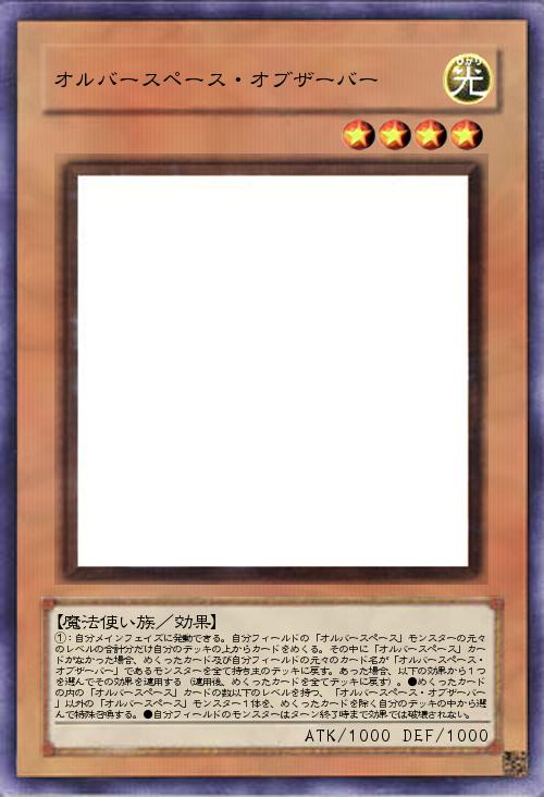 オルバースペースのレベルの合計だけデッキトップをめくり、オルバースペースがない場合はオブザーバーはデッキに戻り、あればめくったオルバースペースの数以下のレベルのオルバースペースをリクルートするか、自分モンスターに効果破壊付与。