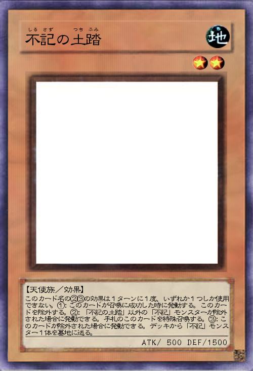 | このカード名の②③の効果は1ターンに1度、いずれか1つしか使用できない。①:このカードが召喚に成功した時に発動する。このカードを除外する。②:「不記の土踏」以外の「不記」モンスターが除外された場合に発動できる。手札のこのカードを特殊召喚する。③:このカードが除外された場合に発動できる。デッキから「不記」モンスター1体を墓地に送る。 | |||