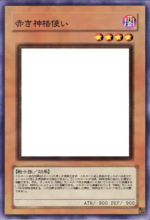 | このカード名の効果は1ターンに1度しか使用できず、このカード名と同名のモンスターは自分フィールドに1体しか表側表示で存在できない。①:このカードが召喚、特殊召喚に成功した場合に発動できる。手札、デッキから「神格」モンスター1体を装備カード扱いでこのカードに装備する。②:自分、相手のバトルフェイズに発動できる。このカードに装備されている「神格」モンスター1体を特殊召喚する。この効果を相手ターンに発動した場合、相手はモンスター1体でしか攻撃できない。 | |||