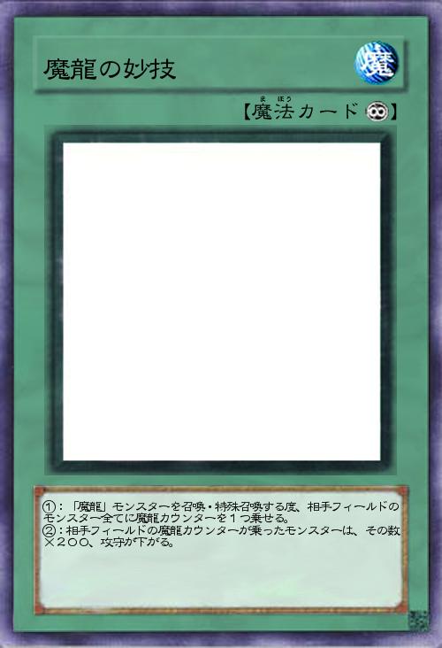 | ①:「魔龍」モンスターを召喚・特殊召喚する度、相手フィールドのモンスター全てに魔龍カウンターを1つ乗せる。 ②:相手フィールドの魔龍カウンターが乗ったモンスターは、その数×200、攻守が下がる。 | |||