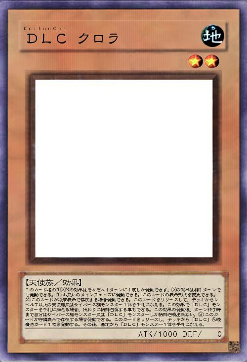 | このカード名の①②③の効果はそれぞれ1ターンに1度しか発動できず、②の効果は相手ターンでも発動できる。①:お互いのメインフェイズに発動できる。このカードの表示形式を変更できる。②:このカードが攻撃表示で存在する場合発動できる。このカードをリリースして、デッキからレベル7以上の天使族又はサイバース族モンスター1体を手札に加える。この効果で「DLC」モンスターを手札に加える場合、代わりに特殊召喚する事もできる。この効果の発動後、ターン終了時まで自分はサイバース族モンスター又は「DLC」モンスターしか特殊召喚出来ない。③:このカードが守備表示で存在する場合発動できる。このカードをリリースし、デッキから「DLC」永続魔法カード1枚を発動する。その後、墓地から「DLC」モンスター1体を手札に加える。 | |||