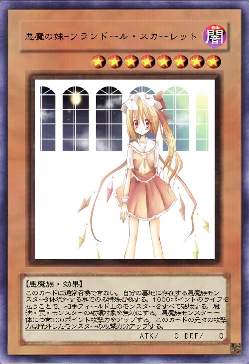 「ですよねーだけど・・・悪魔の妹と呼ばれてるらしい・・・495年間生きている引きこもり野郎・・・。俺にとってはくだらんも・・・)ryこれ以上言ったらフランファンに怒られるので・・・まぁ・・・詳しい事は東方をやるといいv(-0-)v」(2012-06-26 17:50)