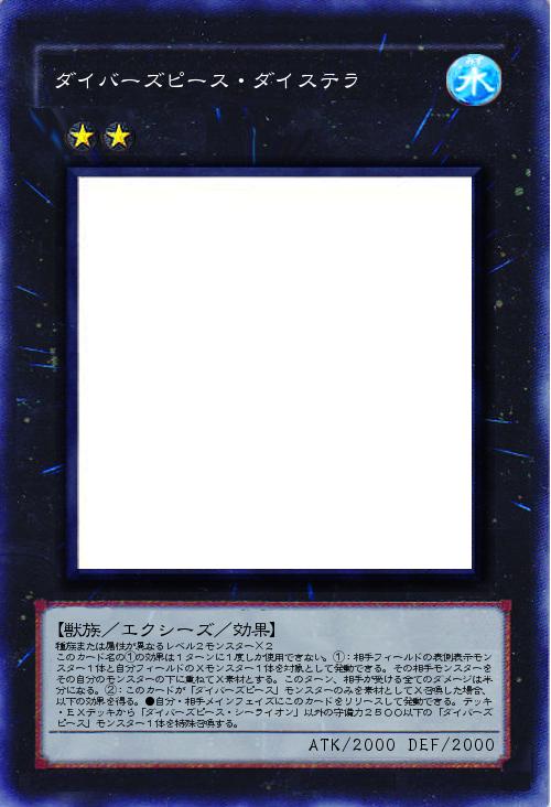 | 種族または属性が異なるレベル2モンスター×2 このカード名の①の効果は1ターンに1度しか使用できない。①:相手フィールドの表側表示モンスター1体と自分フィールドのXモンスター1体を対象として発動できる。その相手モンスターをその自分のモンスターの下に重ねてX素材とする。このターン、相手が受ける全てのダメージは半分になる。②:このカードが「ダイバーズピース」モンスターのみを素材としてX召喚した場合、以下の効果を得る。●自分・相手メインフェイズにこのカードをリリースして発動できる。デッキ・EXデッキから「ダイバーズピース・シーライオン」以外の守備力2500以下の「ダイバーズピース」モンスター1体を特殊召喚する。 | |||
