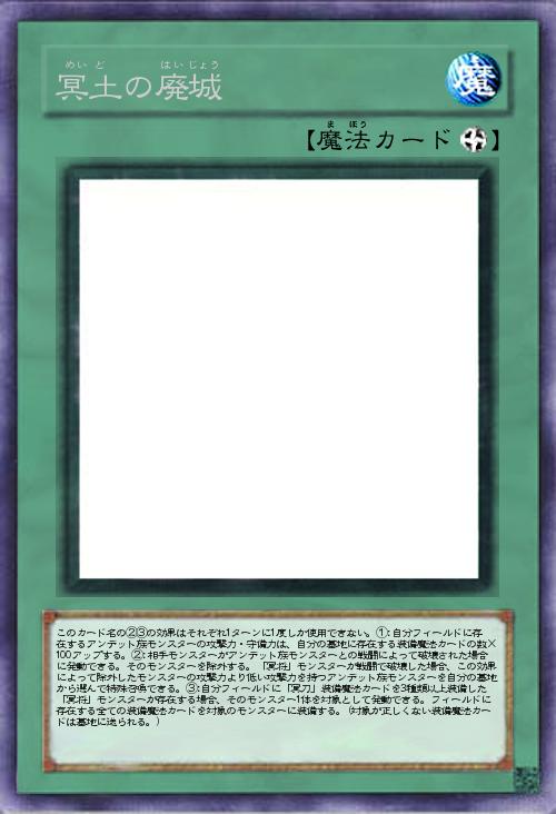 久しぶりに「冥将」サポートカードを投稿させて頂きます。「敗者はこの世(ゲーム)から去り、勝者は更に力を増す」という戦国っぽい効果に仕立てつつ、アンデット族テーマなので墓地から蘇生できるように効果を加えました。最後の③効果は「力の集約」風に記載していますが、裁定が難しいかもしれませんね(笑)。」(2021-02-11 19:01)