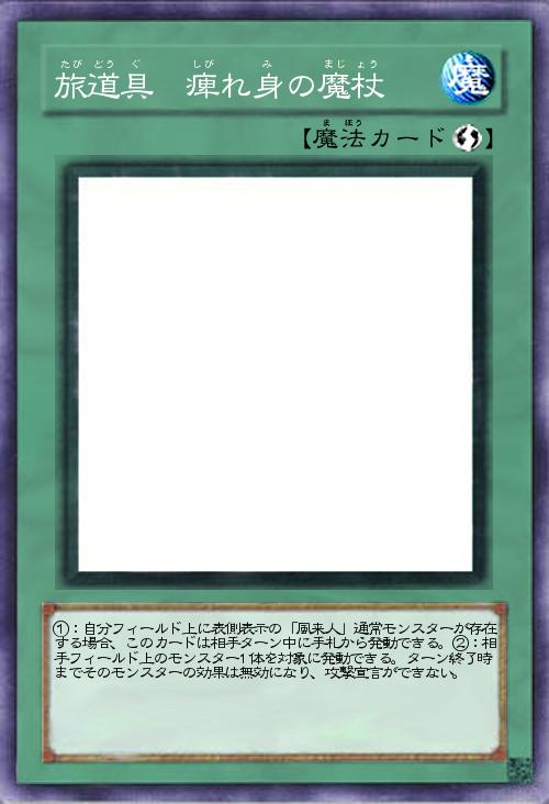 | ①:自分フィールド上に表側表示の「風来人」通常モンスターが存在する場合、このカードは相手ターン中に手札から発動できる。②:相手フィールド上のモンスター1体を対象に発動できる。ターン終了時までそのモンスターの効果は無効になり、攻撃宣言ができない。 | |||