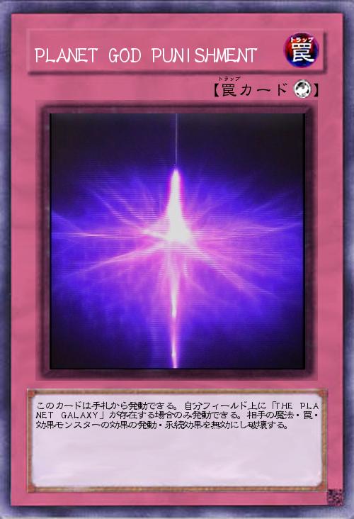 このカードは手札から発動できる。自分フィールド上に「THE PLA NET GALAXY」が存在する場合のみ発動できる。相手の魔法・罠・ 効果モンスターの効果の発動・永続効果を無効にし破壊する。 |