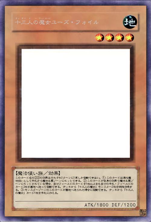 | このカード名の②③の効果はそれぞれ1ターンに1度しか発動できない。①:このカードは速攻魔法扱いとして手札から魔法&罠ゾーンにセットできる。②:このカードが自身の効果で魔法&罠ゾーンにセットされている場合、自分フィールドのカードを1枚以上含む自分の手札・フィールドのカード2枚を墓地へ送って発動できる。デッキから「十三人の魔女」モンスター2枚を特殊召喚する。③:モンスターゾーンのこのカードが墓地へ送られた場合に発動できる。デッキから「十三人の魔女」カード1枚を手札に加える。 | |||