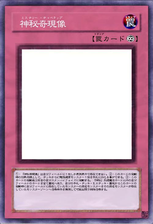 | ①:「神秘奇現像」は自分フィールドに1枚しか表側表示で存在できない。②:このカードの発動時の効果処理として、デッキから幻竜族通常モンスター1体を手札に加える事ができる。③:このカードの発動後2回目の自分スタンバイフェイズに発動する。「神秘」永続魔法カード以外の自分フィールドのカードを全て墓地へ送り、自分の手札・デッキ・EXデッキ・墓地からこのカードの発動時に自分フィールドに存在していたモンスターの同名モンスターをその同名モンスターが存在していたモンスターゾーンへ召喚条件を無視して可能な限り特殊召喚する。 | |||
