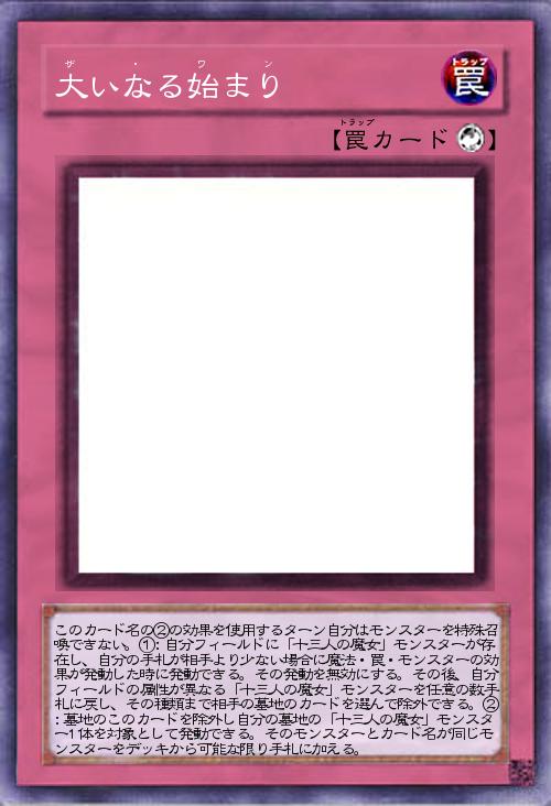 | このカード名の②の効果を使用するターン自分はモンスターを特殊召喚できない。①:自分フィールドに「十三人の魔女」モンスターが存在し、自分の手札が相手より少ない場合に魔法・罠・モンスターの効果が発動した時に発動できる。その発動を無効にする。その後、自分フィールドの属性が異なる「十三人の魔女」モンスターを任意の数手札に戻し、その種類まで相手の墓地のカードを選んで除外できる。②:墓地のこのカードを除外し自分の墓地の「十三人の魔女」モンスター1体を対象として発動できる。そのモンスターとカード名が同じモンスターをデッキから可能な限り手札に加える。 | |||
