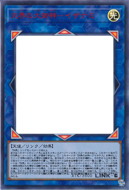| 「天界」リンクモンスター2体以上 自分はこのカードのリンク先となるEXモンスターゾーンにモンスターを出せない。このカード名の①の効果は1ターンに1度しか使用できない。①:このカードが「天界の女神-アマテラス」を素材としてリンク召喚に成功した場合に発動する。自分はデッキの上から5枚を確認し、その中から2枚を選んで自分フィールドに表側表示で置く。残りのカードは好きな順番でデッキの一番上に置く。②:このカードは「天界」カード以外のカードの効果を受けない。③:このカードのリンク先にモンスターが召喚・特殊召喚された場合に発動できる。自分はデッキの一番上のカードを確認し、そのカードが発動条件を満たしている魔法カードの場合、このカードの効果はその魔法カード発動時の効果と同じになる。その後、そのカードをデッキの一番下に置く。違った場合、自分は手札を1枚捨てる。④:リンク召喚したこのカードがフィールドから離 | |||
