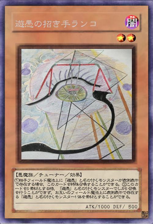 | ①相手フィールド魔法上に「遊愚」と名の付くモンスターが表側表示で存在する場合、このカードを特殊召喚することができる。②このカードをS素材とする時、「遊愚」と名の付くモンスターでしかS召喚を行うことができず、お互いのフィールド魔法上に表側表示で存在する「遊愚」と名の付くモンスター1体を素材とすることができる。 | |||