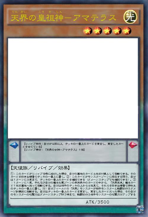 | 【リバイブ条件:自分が4回以上、デッキの一番上のカードを宣言し、宣言したカードを当てている】 【リバイブ素材:「天界の女神-アマテラス」1体】 | |||